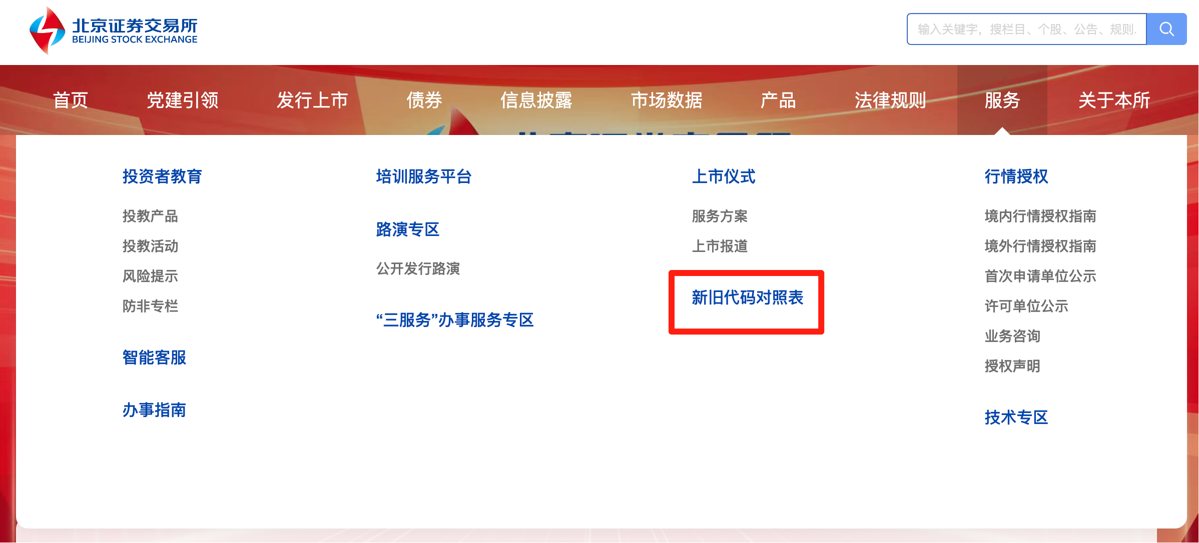 为便于市场参与人顺利过渡,北交所官网“服务—新旧代码对照表”栏目将提供详细的新旧代码对应关系查询服务。